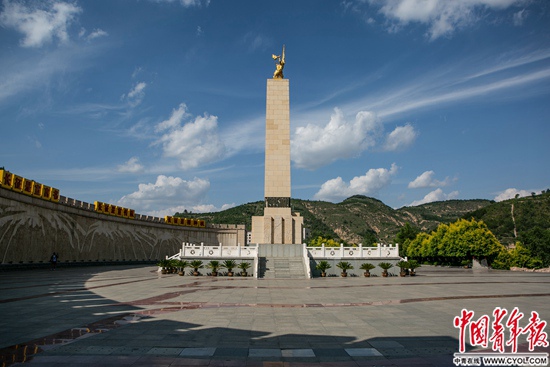 8月7日,陕西省吴起县,中央红军长征胜利纪念园中的纪念碑。中国青年报·中国青年网见习记者 曲俊燕/摄