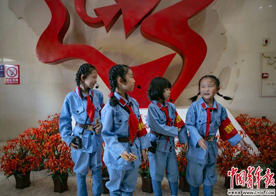 8月7日,陕西省吴起县,中央红军长征胜利纪念馆内,几名“红领巾讲解员”正在准备给观众讲解。中国青年报·中国青年网见习记者 曲俊燕/摄