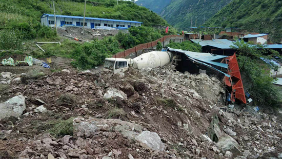8月14日12时44分左右,位于四川凉山州甘洛县的成昆铁路凉红至埃岱站间突发数万方高位岩体崩塌,导致线路再次中断,现场部分抢险人员失联。曹尚/摄(新华社发)