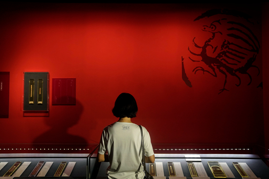 中国国家博物馆、湖南省文物局、湘西龙山县人民政府共同举办的“小城故事——湖南龙山里耶秦简文化展”,8月6日在国家博物馆开幕。2002年,地处湖南武陵山腹地的湘西龙山县里耶镇出土38000多枚秦简。数量是此前全国发现秦代竹简总和的10倍,总计20余万字。已清洗整理的秦简纪年从秦王政廿五年(公元前222年)至秦二世胡亥二年(公元前208年),纪年完整,资料翔实,实属国内外所罕见。里耶秦简填补了秦朝史料佚缺,最大限度地复活还原了秦朝县政情况。新华社记者 金良快/摄