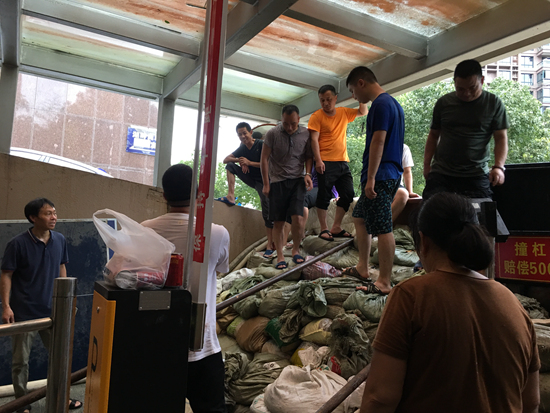 屈文明最后统计,他们一共用掉约3000个防洪沙袋,其中差不多有2000个是小区居民提供的。