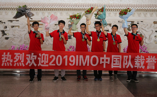 7月23日,北京,6位代表中国重登国际数学奥林匹克竞赛(IMO)冠军宝座的少年载誉回国。视觉中国供图