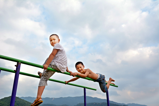 2016年7月,湖北省孝昌县险峰中学的孩子们在操场上玩耍。险峰中学位于大悟山南麓,四面环山,是一所农村寄宿制学校,有小学四年级至初三年级学生近400人。(资料图片)视觉中国供图