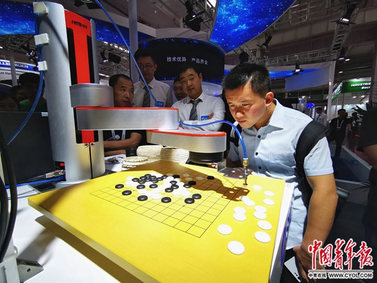 2019世界机器人大会上的“人机对弈”。中国青年报·中国青年网记者 邱晨辉/摄
