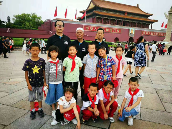 马复兴和学生一起参观天安门广场。受访者供图
