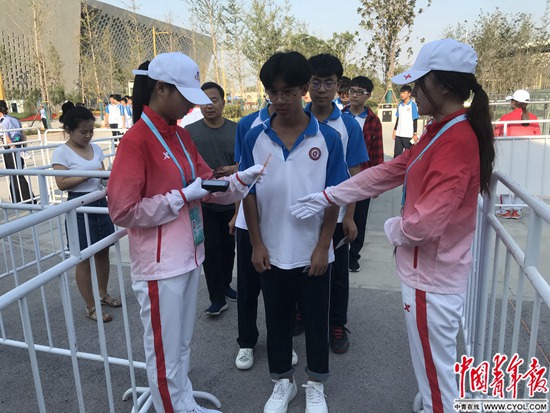 志愿者进行核验检查入场人员信息及证件演练。