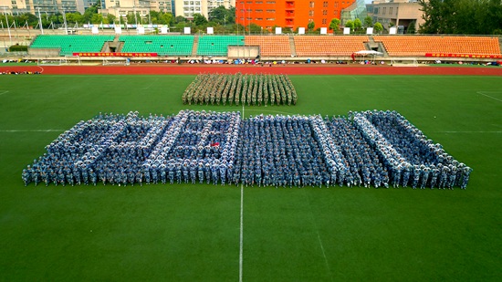 9月12日,浙江财经大学学子以整齐的方阵变换为新中国成立70周年献上特殊的祝福。浙江财经大学 胡丹妮/摄