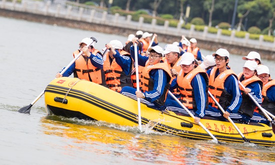 浙江海洋大学学子借助皮艇进行海上航行、紧急求生、物资运输和抗洪救灾等海上模拟训练。浙江海洋大学 沈家迪/摄