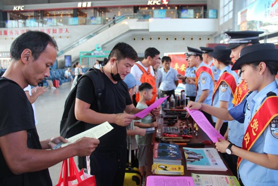 近日,济南铁路公安处枣庄站派出所的青年民警开展“平安站车路,金盾护你行”专项行动。他们在辖区集市开展铁路安全知识宣传,深入高铁沿线34个村庄进行爱路护路宣传,宣传场次40余起,累计受教育群众3000余人。安卫国/摄