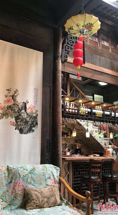 “对徽州文化有自己的理解,在国内外跑的地方也比较多。回到家乡,希望丰乐草堂能中西合璧,体现文化品位、艺术气质。”叶丹奇说。儿时在上海的成长经历,则让孙斐斐对老上海家居风格情有独钟,“老五斗柜比较温馨,让人感觉是家”。按照“家”的想法布置这座古民居——把钢琴搬进老宅,青年钢琴家袁芳到访练琴,天井的效果好似大音箱;旅游看到有意思的物件也琢磨回到老宅怎么布置,于是楼梯贴上西文旧报纸,营造吧台氛围;古色古香的长条桌专用于同好一起切磋书画技艺;三楼三面朝竹林的书法工作室,叶老师每日例行关门临帖,家人自觉不打扰。老砖院落可以搞聚会,屋后有小菜地,还有一间冬日炉桌小酒吧……