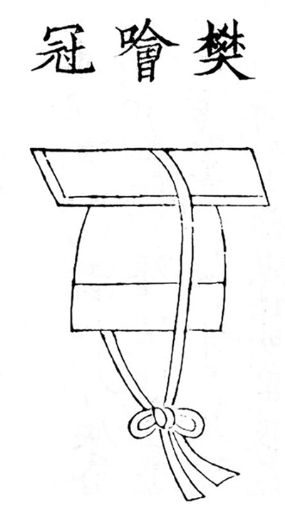 从明朝百科式图录类书《三才图会》中可以看到,刘邦继承了秦代的服装制度,所以西汉皇帝没有一位在画像中是戴冕的。其他史料也表明,在西汉出现了刘邦喜欢的刘氏冠(见图3),由樊哙得名的樊哙冠(见图4),以及委貌冠、进贤冠、建华冠、方山冠、巧士冠、却敌冠等多种头衣首服。