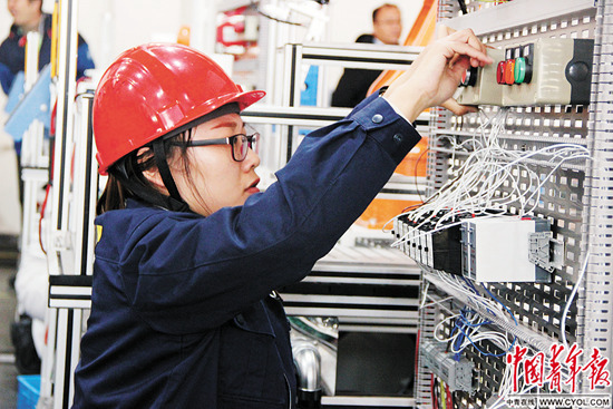 图为维修电工选手在比赛中。中国青年报·中国青年网记者 陈凤莉/摄