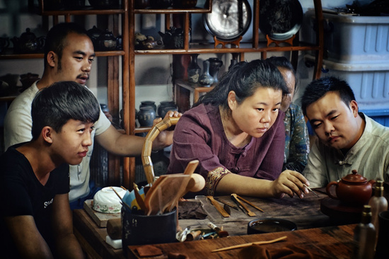 作为建水紫陶非遗传承人,田静在2018年成立紫陶技能传习中心。这是一个向更多青年尤其是农村青年传授紫陶技艺的公益组织。