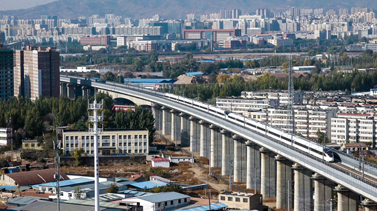 10月26日,河北张家口。随着一组双列重联动车组在北京昌平至河北怀安段线路上投入试验,这是继10月5日联调联试工作启动以来至10月20日列车逐级提速创下最高时速385公里后,京张高铁又进入试验新项目。视觉中国供图