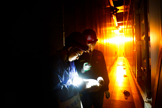 10月27日,中国卫星海上测控部所属的远望号火箭运输船编队,将长征5号火箭集装箱安全运抵海南文昌清澜港。图为科研人员实时记录货舱内环境数据。视觉中国供图