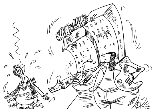 单身人士哪项花销最高?某大型互联网信息平台发布的调研报告显示,41.6%的单身人群房租或房贷支出排在首位;23.3%的单身人群在服装化妆品等日常生活类支出最高;21.2%的单身人群养宠物、旅游等游乐支出最高。一个有趣现象是,虽然单身人群对“有房有车”有所期待,但涉及对另一半的要求上,这个条件显得不那么的“刚需”。(中国新闻网11月5日)漫画:徐简