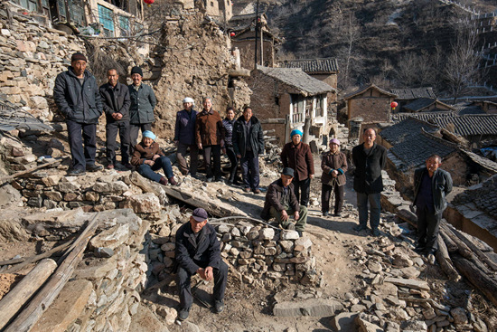 村长韩国印喊来了全体村民,在村里的一处石头坡上让王晓岩给他们拍了一张合影。那是2018年年初,除了一位瘫痪在床的村民,其余14人全来了。在兼有南方吊脚楼和北方民居风格的老屋旁,那些或站或坐的大汖村村民,如今还剩13个。