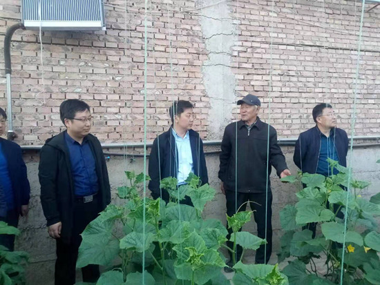 团中央驻灵丘扶贫工作队在灵丘一个有机农产品蔬菜种植大棚调研。