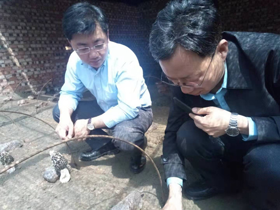 团中央驻灵丘扶贫工作队在灵丘一个羊肚菌种植基地调研。