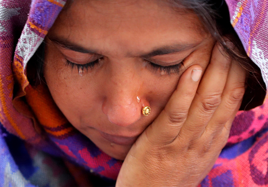 12月8日,在印度新德里,一名遇难者家属在停尸房外哭泣。印度新德里警方说,8日凌晨新德里北部地区一座四层商业建筑失火,现已造成至少43人丧生、多人受伤。新华社/路透