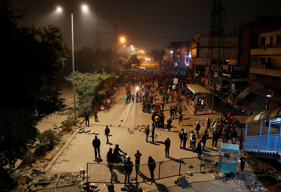 12月16日,在印度首都新德里,示威者封锁一条道路。抗议印度议会通过《公民身份法》修正案的示威者15日在新德里同警方发生冲突。冲突导致数十人受伤,另有4辆公交车被烧毁。警方逮捕数十名示威者。《公民身份法》修正案日前相继在印度议会下院和上院通过,后由总统签署成为法律。修正案授予2014年12月31日及以前抵印,来自巴基斯坦、孟加拉国、阿富汗三国并信奉6种宗教的非法移民公民身份,但排除穆斯林。新华社/路透