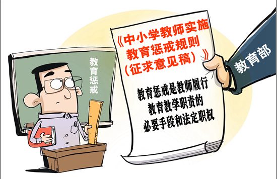 前不久,教育部公布《中小学教师实施教育惩戒规则》征求意见稿。其中明确提出,教育惩戒是教师履行教育教学职责的必要手段和法定职权,可根据学生违规违纪的情节轻重采用不同惩戒手段。与此同时,征求意见稿也为教师行为列出了“禁止清单”。
