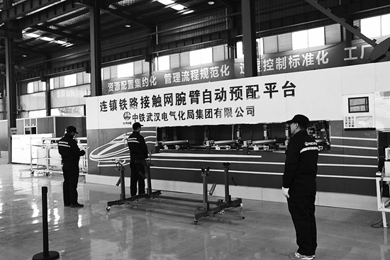 2017年12月,中铁武汉电气化局一公司连镇项目工程组立第一杆。