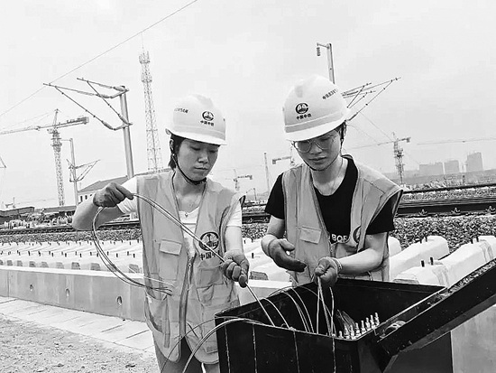 信号女子突击队的队长徐艮带着一帮“娘子军”,淮安东信号楼2000多根电缆在她们手中变得绕指柔,爬架上的电缆横平竖直、弧度统一,40多万根线头精准到位、不差分毫,那是18个“女汉子”“巧手慧思”的结晶,也是50多个日日夜夜的心血和汗水浇注。