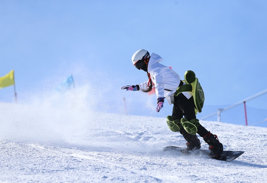 前不久,宁夏固原首届冰雪文化旅游节在泾源县娅豪国际滑雪场开幕。图为滑雪爱好者在体验雪上运动。新华社记者 贾浩成/摄