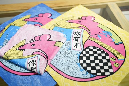 乔麦一直在思考,年画究竟是什么?它在人们的生活中究竟起到什么作用?鼠年到来,她创作了3款年画新作,“鼠你有福”“鼠你有才”“鼠你有财”,鼠谐音数,一推出就受到了顾客喜爱。在“鼠你有才”年画上,老鼠身上装饰着琴棋书画,正在聚精会神地看《你有才》这本书,书封面的浪花寓意学海永无止境。这些年画不仅是画,还做成了6款毛巾,被抢购一空,目前已经补货了两次;与瓷器合作,把年画用24k金印到了“平安四季杯”上,销量也不错。