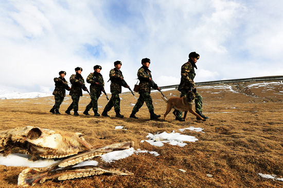 官兵们在无人区里巡逻。