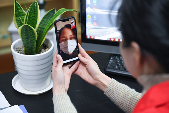 2月4日,浙江慈溪青年志愿者通过视频电话开展义务心理咨询服务。新华社记者 徐昱/摄(新华社发)