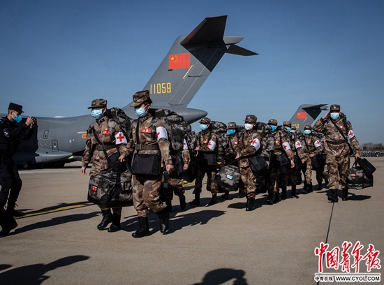 2月17日,武汉天河机场,从上海、成都、兰州等多地起飞的运-20等多架空军运输机载着军队增派支援武汉抗击新冠肺炎疫情的又一批医护人员和物资抵达武汉。至此,军队增派的2600名医护人员已全部抵达武汉。