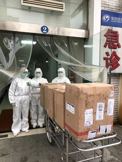 华科北京校友会和德国校友会联合采购的医疗物资进入医院一线。受访者供图