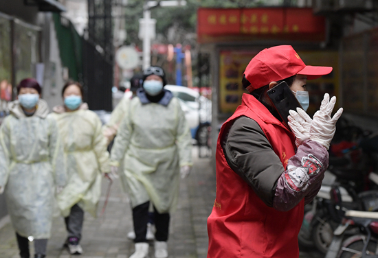 气温过低时,测温枪无法正常工作,社区工作者们就把测温枪揣在怀里。“站马路站得冻透了”,就先去贴宣传单,巡逻棋牌室、理发店,看有没有偷偷开张的,卖元宵的地方有没有排队的。跑完一趟热乎了再回来,大家轮流跑——“热循环”。
