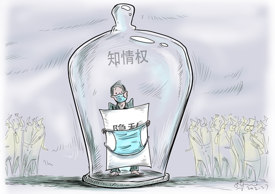 疫情防控的当下,全国范围内发生多起涉疫情个人信息泄露事件。一方面要保障公众知情权,另一方面个人隐私权不可漠视。这要求执法部门在具体执法中掌握好“度”。2月24日,司法部发布意见,要求疫情防控措施要与疫情可能造成的社会危害的性质、程度和范围相适应,尽量最小程度地减损公民权益。(《工人日报》2月27日)漫画:徐简