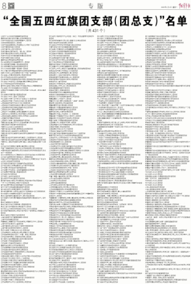 “全国五四红旗团支部(团总支)”名单