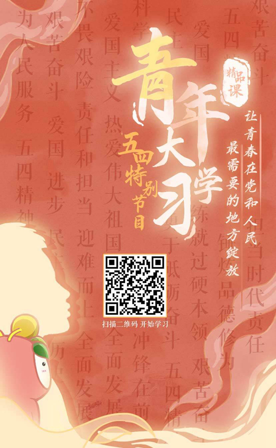 本期“青年大学习”网上主题团课以“让青春在党和人民最需要的地方绽放”为主题,引导广大青年深入学习理解五四精神,在新时代继续传承五四精神,以青春之我,创造青春之中国。