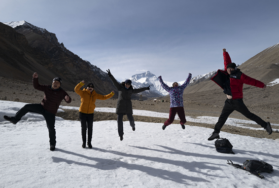 5月5日,游客在珠峰景区内留影。西藏自治区日喀则旅游发展局发布消息,从2020年5月1日起恢复开放国家4A级旅游景区珠穆朗玛国家公园,游客可到距珠峰大本营2公里外的绒布寺附近欣赏珠峰美景。同时,珠峰景区在2020年度对全国医护人员实行免票活动,医护人员可持医师资格证、护士资格证与身份证免票游览。新华社记者 普布扎西/摄