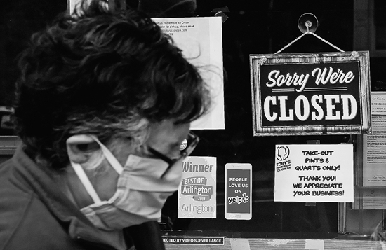 当地时间5月5日,美国弗吉尼亚州阿灵顿,一名女子走过一家关闭的店铺。美国供应管理学会(ISM)5日公布的数据显示,受新冠疫情影响,4月份美国非制造业采购经理人指数(PMI)从3月份的52.5点骤降至41.8点,创下自2009年3月以来最低值。数据显示,在18个非制造业行业中,娱乐休闲、农业和零售业下滑最明显。新华社/法新