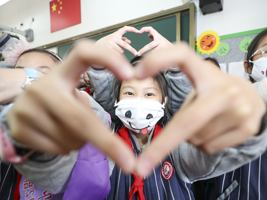 5月8日是“世界微笑日”,各地学校组织多种活动,引导学生养成乐观向上的生活态度。赵启瑞/摄(新华社发)