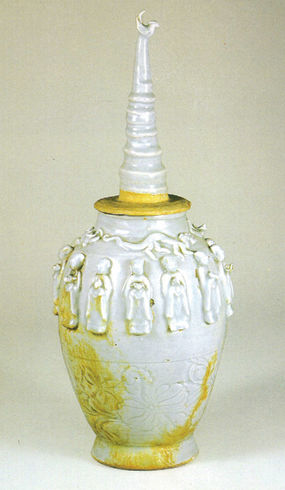 施釉,即通过浇、蘸、涂、荡、吹等方法,在器物坯体内外施一层玻璃质釉,从而使坯体光滑润泽。