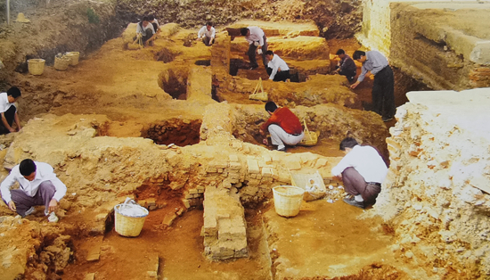 1994年7月27日,在龙珠阁附近的一处民房改建工地上,考古专家又发现了明朝初年釉里红花卉大碗的碎片。这次发现最终确定了古御窑厂的中心,正是处于龙珠阁至市政府大院这片总面积约5.1万平方米的区域内。2000年10月,经国家文物局批准,由中国考古研究所和景德镇陶瓷馆的专家共同组成御窑考古工作队,开始对珠山御窑遗址展开全面的保护和发掘工作。