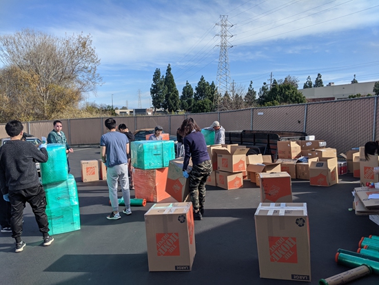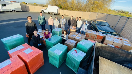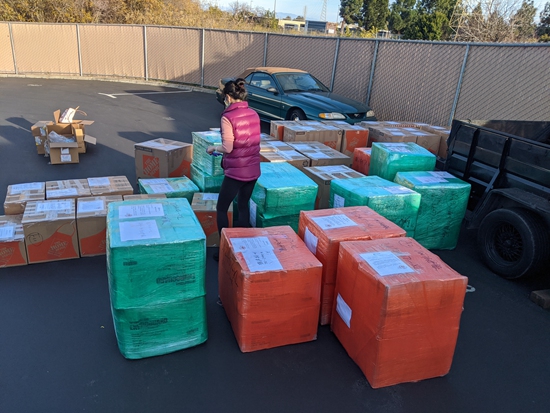 曾有一位志愿者,开车在北加州湾区沿着高速到不同城市“收了一路货”,因为团队成员住得分散,他挨个上门,一箱箱地拉上物资。