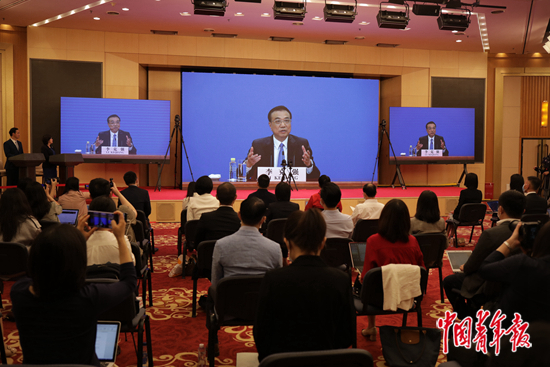 5月28日,李克强总理以远程网络视频的形式回答中外记者提问。中青报·中青网记者 李隽辉/摄