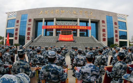 “祝华峰,现在我把这面有381个弹孔的铁血战旗交接给你……”4月22日,“上甘岭特功八连”组织主官交接暨入连仪式,一面弹痕累累、饱经战火洗礼的战旗从上一任指导员雷晋武手中交接到现任指导员祝华峰手中。
