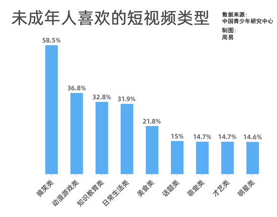 如今,短视频在未成年人中越来越流行。他们为什么喜欢短视频?什么样的内容最吸引孩子?中国青少年研究中心发布的《中小学生短视频使用特点及其保护》调查报告显示,未成年人喜欢短视频的主要原因是减压(50.4%)和好玩(49.9%)。未成年人最喜欢搞笑类的短视频。