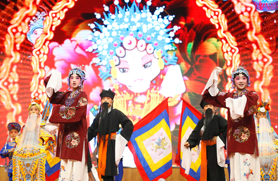 5月30日,山东青岛通济实验学校的学生在校园京剧艺术节上表演京剧《穆桂英挂帅》。新华社 梁孝鹏/摄
