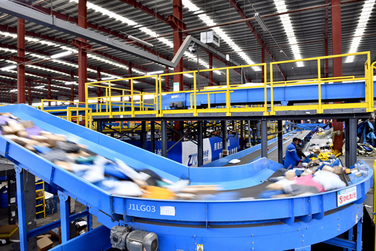11月21日,在临沂国际陆港智慧物流园,自动分拣系统在分拣快递包裹。