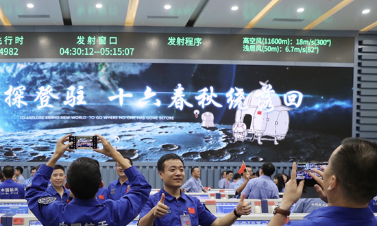 11月24日4时30分,我国在中国文昌航天发射场,用长征五号遥五运载火箭成功发射探月工程嫦娥五号探测器。这是航天科技人员在文昌航天发射场庆祝发射成功。新华社记者 金立旺/摄
